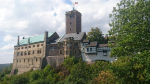 Das Foto zeigt die Wartburg bei Eisenach. Sie ist zum Sinnbild einer „festen Burg“ geworden, weil sie Luther als Zuflucht und Versteck gedient hat, so dass dieser hier das Neue Testament ins Deutsche übersetzten konnte.